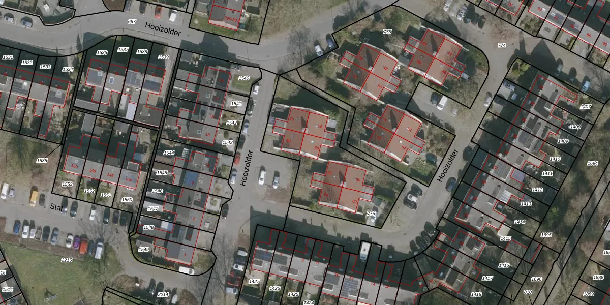 Het perceel waarop Hooizolder 58 staat heeft een oppervlakte van 1170 m². Dit is een zeer groot perceel. De perceeloppervlakte wordt geregistreerd door het Kadaster. Gedetailleerde informatie over de maten van dit perceel kunt u vinden in het rapport Kadastrale kaart met maatvoering van Hooizolder 58.