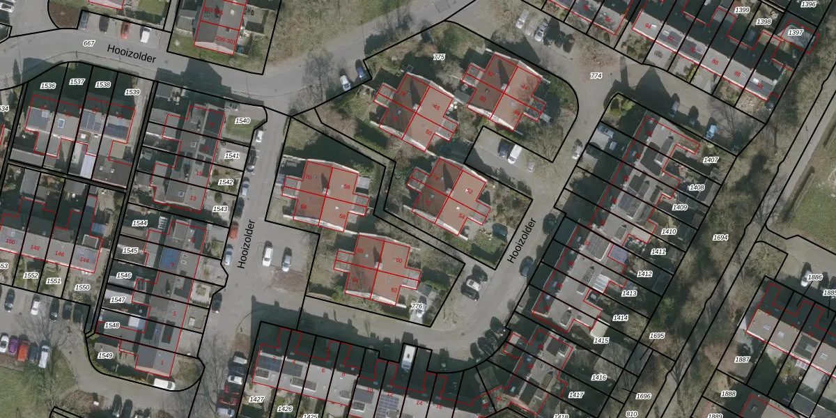 Het perceel waarop Hooizolder 72 staat heeft een oppervlakte van 1915 m². Dit is een zeer groot perceel. De perceeloppervlakte wordt geregistreerd door het Kadaster. Gedetailleerde informatie over de maten van dit perceel kunt u vinden in het rapport Kadastrale kaart met maatvoering van Hooizolder 72.