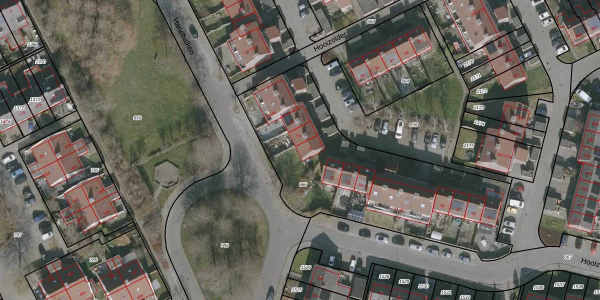 Het perceel waarop Hooizolder 77 staat heeft een oppervlakte van 2525 m². Dit is een zeer groot perceel. De perceeloppervlakte wordt geregistreerd door het Kadaster. Gedetailleerde informatie over de maten van dit perceel kunt u vinden in het rapport Kadastrale kaart met maatvoering van Hooizolder 77.