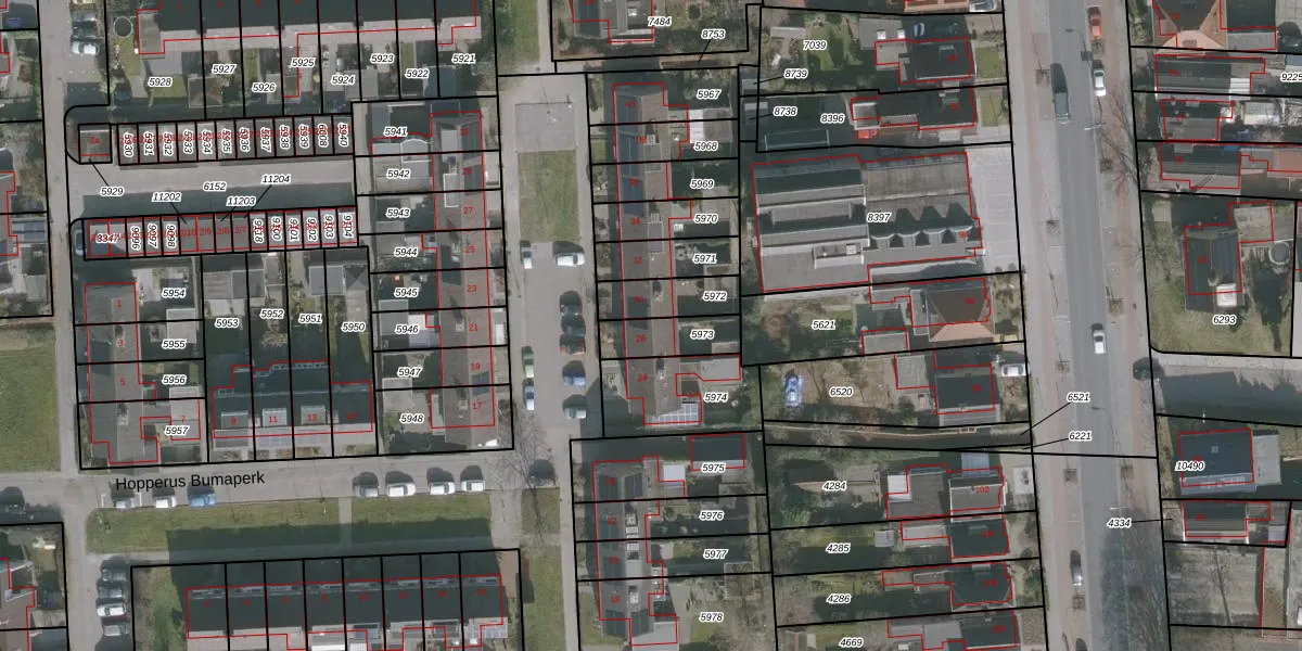 Gebruik de zoekbalk of klik op een perceel voor informatie over de adressen binnen dit perceel.