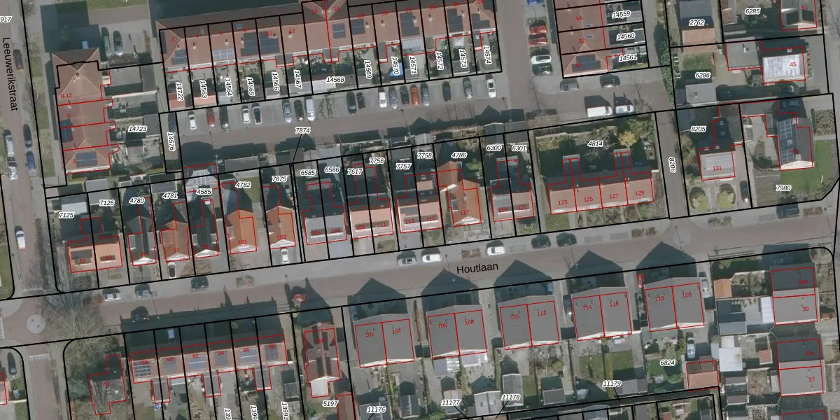 Gebruik de zoekbalk of klik op een perceel voor informatie over de adressen binnen dit perceel.