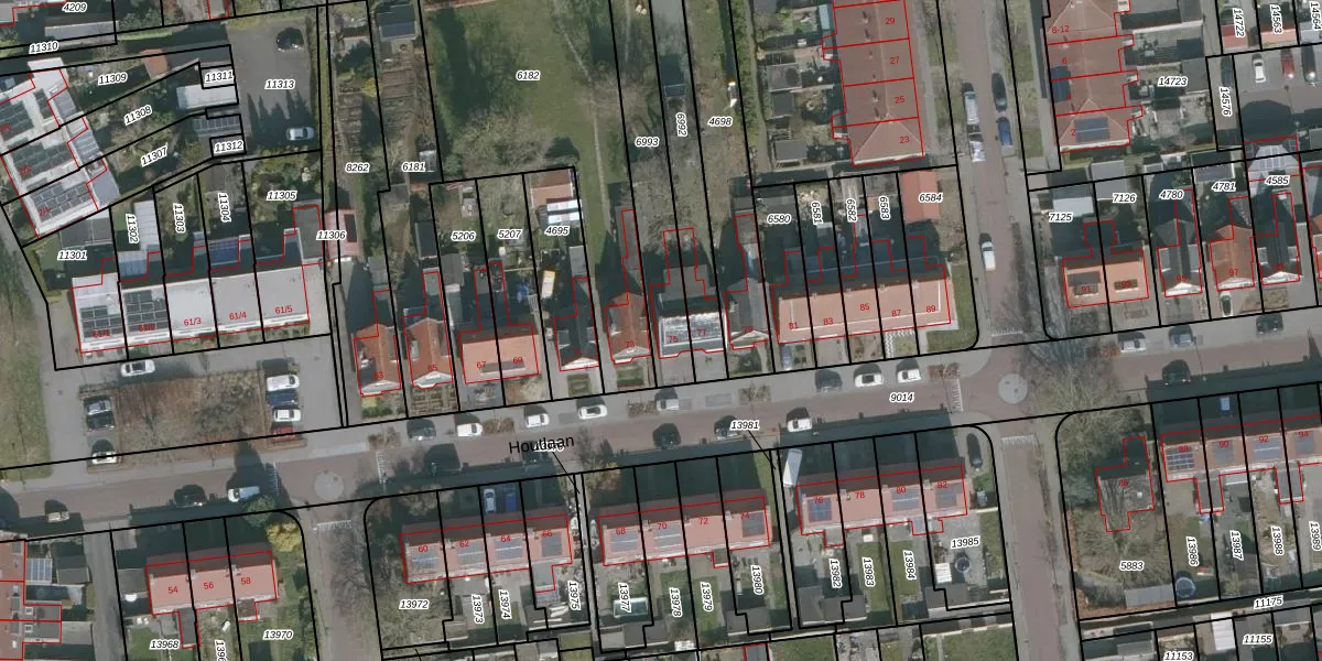 Gebruik de zoekbalk of klik op een perceel voor informatie over de adressen binnen dit perceel.