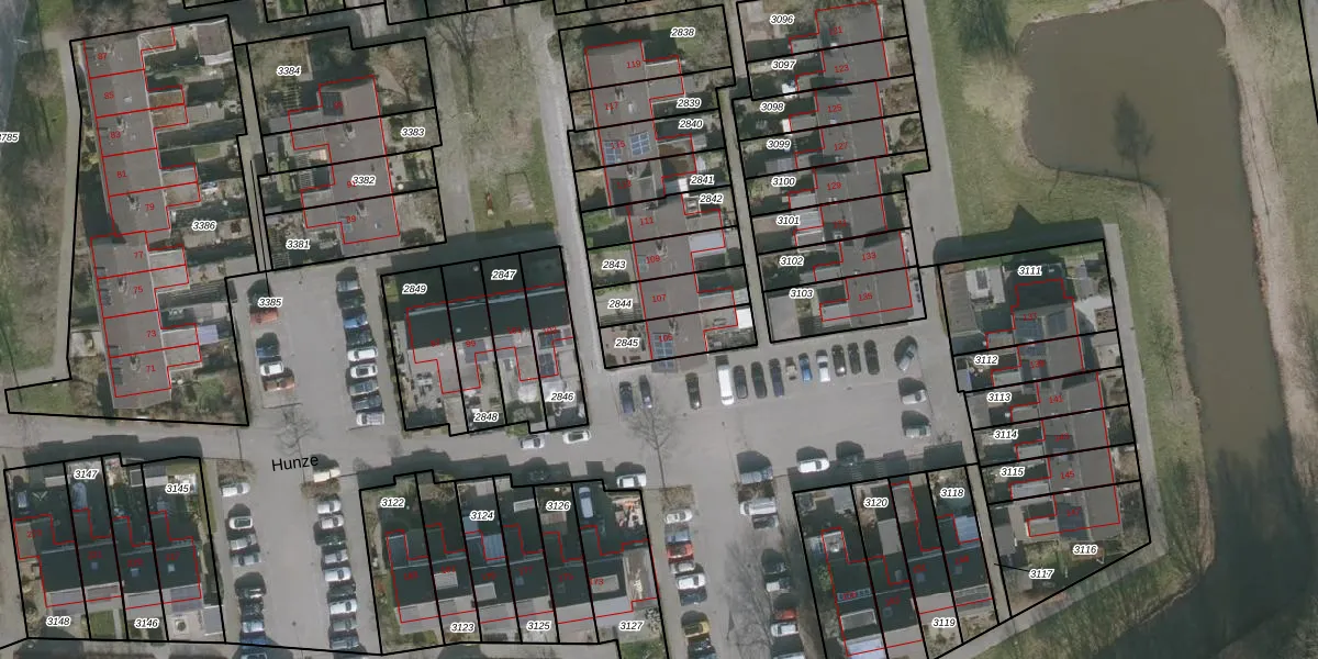 Het perceel waarop Hunze 105 staat heeft een oppervlakte van 146 m². Dit is een middelgroot perceel. De perceeloppervlakte wordt geregistreerd door het Kadaster. Gedetailleerde informatie over de maten van dit perceel kunt u vinden in het rapport Kadastrale kaart met maatvoering van Hunze 105.