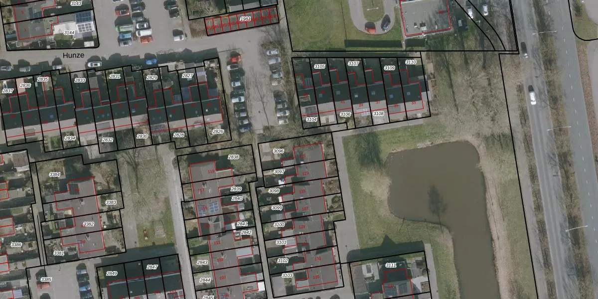 Het perceel waarop Hunze 121 staat heeft een oppervlakte van 225 m². Dit is een middelgroot perceel. De perceeloppervlakte wordt geregistreerd door het Kadaster. Gedetailleerde informatie over de maten van dit perceel kunt u vinden in het rapport Kadastrale kaart met maatvoering van Hunze 121.