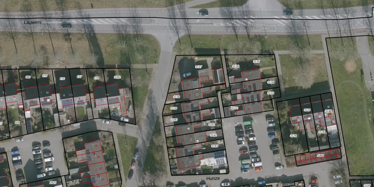 Het perceel waarop Hunze 13 staat heeft een oppervlakte van 172 m². Dit is een middelgroot perceel. De perceeloppervlakte wordt geregistreerd door het Kadaster. Gedetailleerde informatie over de maten van dit perceel kunt u vinden in het rapport Kadastrale kaart met maatvoering van Hunze 13.