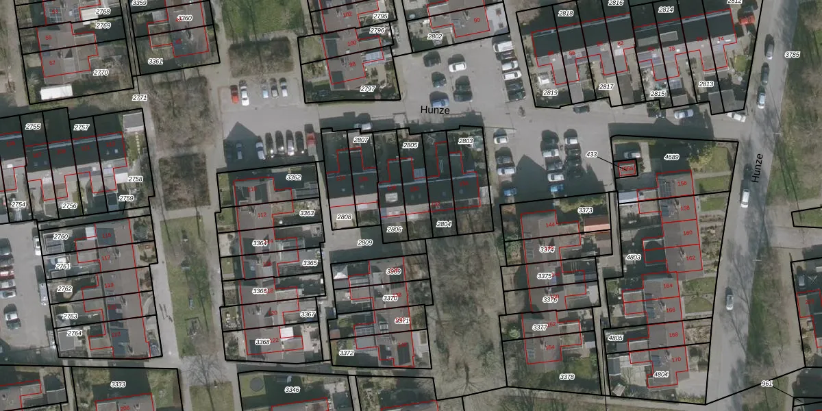 Het perceel waarop Hunze 130 staat heeft een oppervlakte van 159 m². Dit is een middelgroot perceel. De perceeloppervlakte wordt geregistreerd door het Kadaster. Gedetailleerde informatie over de maten van dit perceel kunt u vinden in het rapport Kadastrale kaart met maatvoering van Hunze 130.