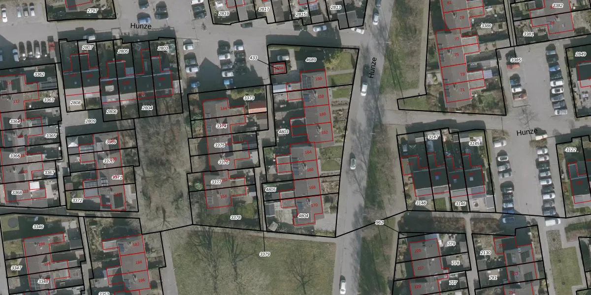 Het perceel waarop Hunze 164 staat heeft een oppervlakte van 772 m². Dit is een groot perceel. De perceeloppervlakte wordt geregistreerd door het Kadaster. Gedetailleerde informatie over de maten van dit perceel kunt u vinden in het rapport Kadastrale kaart met maatvoering van Hunze 164.