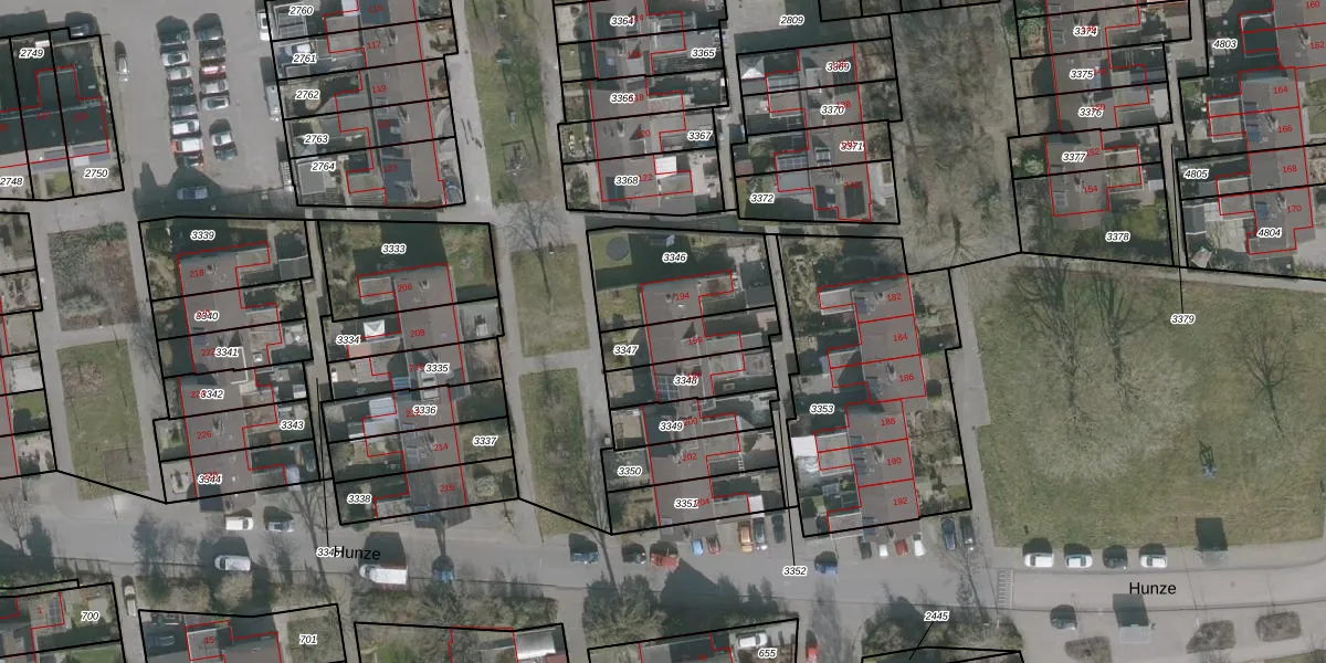 Het perceel waarop Hunze 196 staat heeft een oppervlakte van 159 m². Dit is een middelgroot perceel. De perceeloppervlakte wordt geregistreerd door het Kadaster. Gedetailleerde informatie over de maten van dit perceel kunt u vinden in het rapport Kadastrale kaart met maatvoering van Hunze 196.
