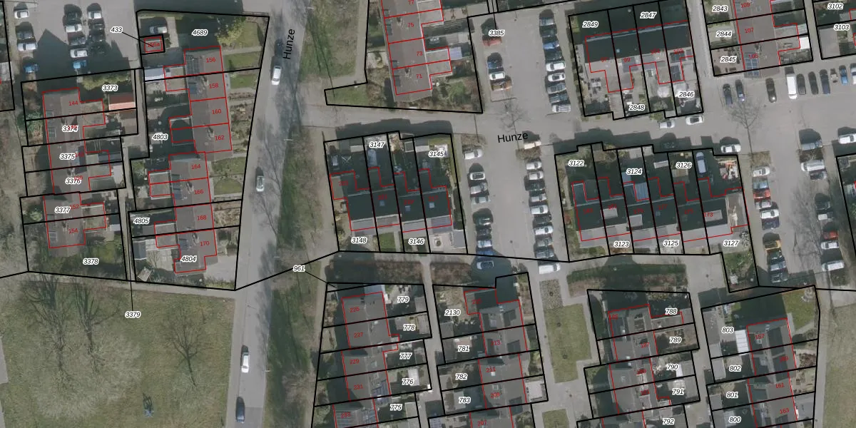 Het perceel waarop Hunze 217 staat heeft een oppervlakte van 245 m². Dit is een middelgroot perceel. De perceeloppervlakte wordt geregistreerd door het Kadaster. Gedetailleerde informatie over de maten van dit perceel kunt u vinden in het rapport Kadastrale kaart met maatvoering van Hunze 217.