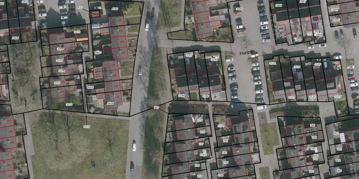 Het perceel waarop Hunze 223 staat heeft een oppervlakte van 246 m². Dit is een middelgroot perceel. De perceeloppervlakte wordt geregistreerd door het Kadaster. Gedetailleerde informatie over de maten van dit perceel kunt u vinden in het rapport Kadastrale kaart met maatvoering van Hunze 223.