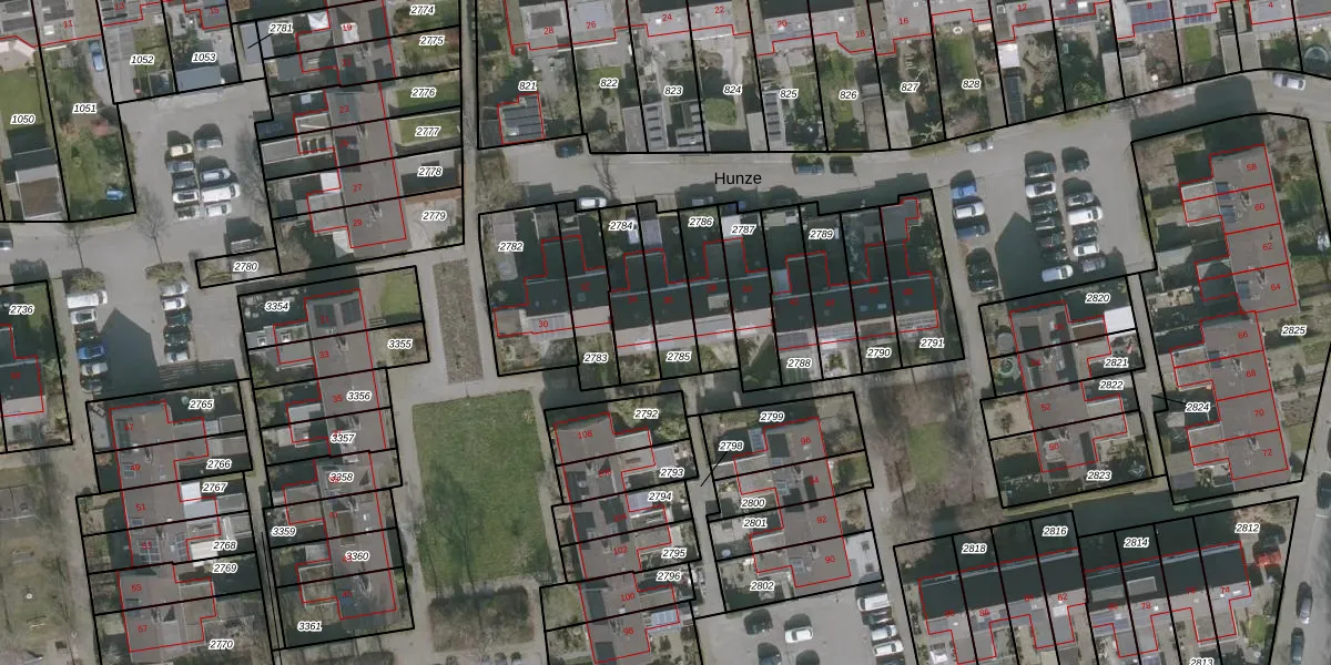 Het perceel waarop Hunze 36 staat heeft een oppervlakte van 155 m². Dit is een middelgroot perceel. De perceeloppervlakte wordt geregistreerd door het Kadaster. Gedetailleerde informatie over de maten van dit perceel kunt u vinden in het rapport Kadastrale kaart met maatvoering van Hunze 36.