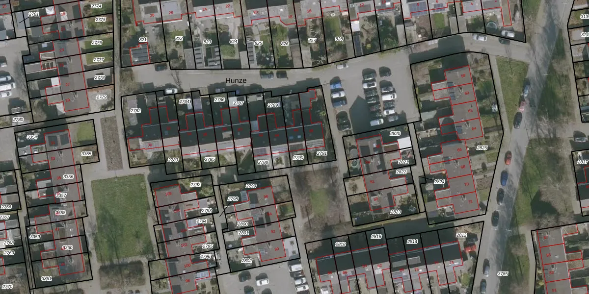 Het perceel waarop Hunze 46 staat heeft een oppervlakte van 147 m². Dit is een middelgroot perceel. De perceeloppervlakte wordt geregistreerd door het Kadaster. Gedetailleerde informatie over de maten van dit perceel kunt u vinden in het rapport Kadastrale kaart met maatvoering van Hunze 46.