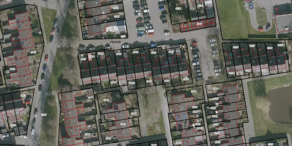 Het perceel waarop Hunze 55 staat heeft een oppervlakte van 159 m². Dit is een middelgroot perceel. De perceeloppervlakte wordt geregistreerd door het Kadaster. Gedetailleerde informatie over de maten van dit perceel kunt u vinden in het rapport Kadastrale kaart met maatvoering van Hunze 55.