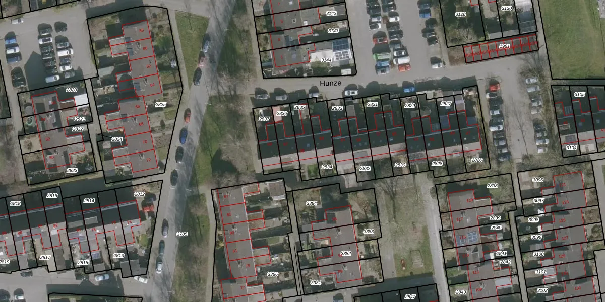 Het perceel waarop Hunze 65 staat heeft een oppervlakte van 160 m². Dit is een middelgroot perceel. De perceeloppervlakte wordt geregistreerd door het Kadaster. Gedetailleerde informatie over de maten van dit perceel kunt u vinden in het rapport Kadastrale kaart met maatvoering van Hunze 65.