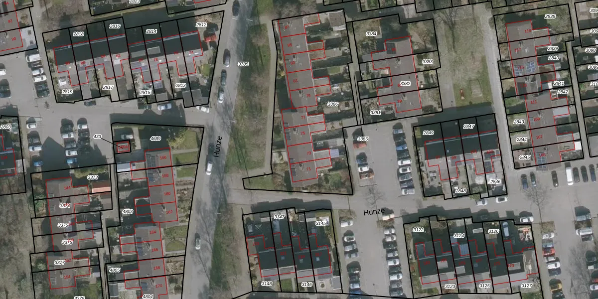 Het perceel waarop Hunze 73 staat heeft een oppervlakte van 1556 m². Dit is een zeer groot perceel. De perceeloppervlakte wordt geregistreerd door het Kadaster. Gedetailleerde informatie over de maten van dit perceel kunt u vinden in het rapport Kadastrale kaart met maatvoering van Hunze 73.