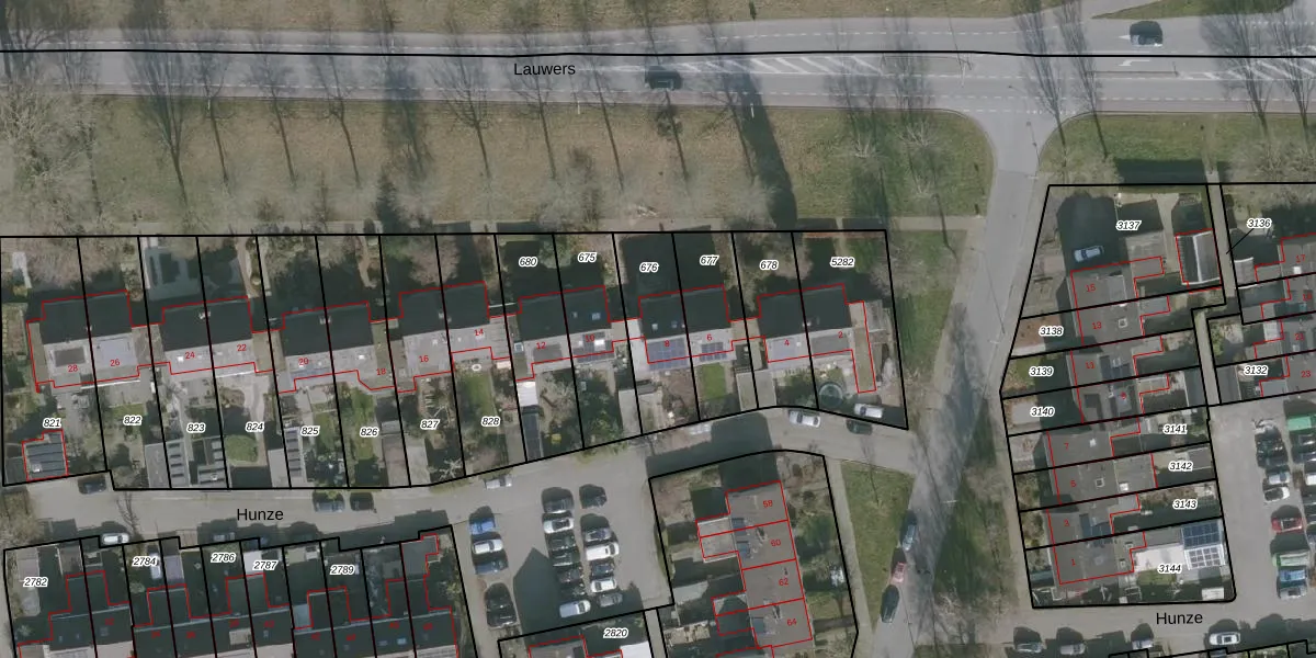Het perceel waarop Hunze 8 staat heeft een oppervlakte van 268 m². Dit is een middelgroot perceel. De perceeloppervlakte wordt geregistreerd door het Kadaster. Gedetailleerde informatie over de maten van dit perceel kunt u vinden in het rapport Kadastrale kaart met maatvoering van Hunze 8.