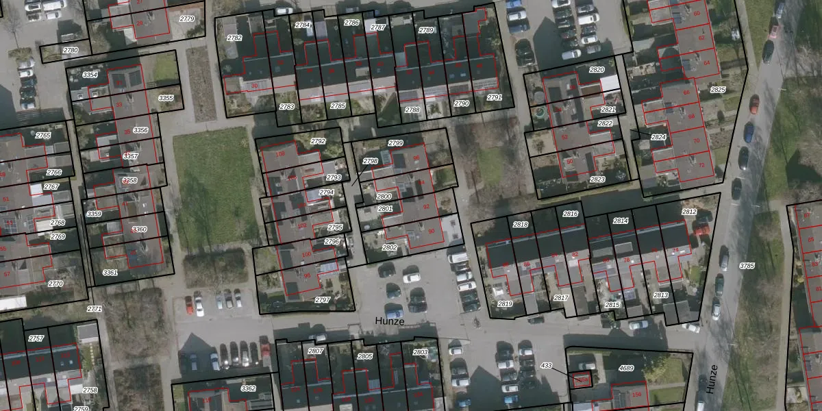 Hunze 92 is gelegen op kadastraal perceel DTN02D2801. Deze kadastrale aanduiding is uniek en wordt gebruikt door het Kadaster om eigendomsrechten en andere zakelijke rechten vast te leggen. Het perceel maakt onderdeel uit van de kadastrale gemeente Drachten.