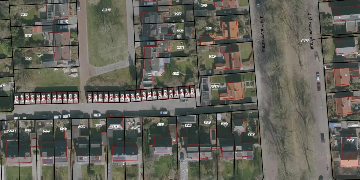 Het perceel waarop J.M.Houwenstraat 42-3 staat heeft een oppervlakte van 19 m². Dit is een klein perceel. De perceeloppervlakte wordt geregistreerd door het Kadaster. Gedetailleerde informatie over de maten van dit perceel kunt u vinden in het rapport Kadastrale kaart met maatvoering van J.M.Houwenstraat 42-3.