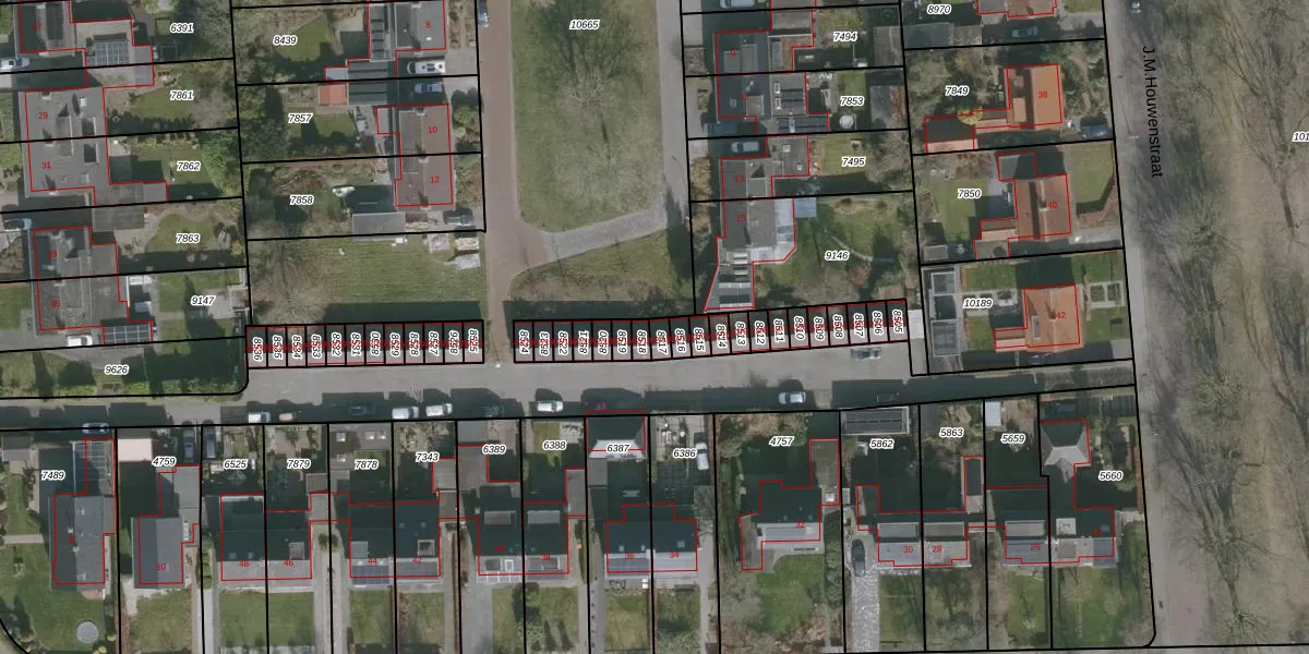 Het perceel waarop J.M.Houwenstraat 42-13 staat heeft een oppervlakte van 19 m². Dit is een klein perceel. De perceeloppervlakte wordt geregistreerd door het Kadaster. Gedetailleerde informatie over de maten van dit perceel kunt u vinden in het rapport Kadastrale kaart met maatvoering van J.M.Houwenstraat 42-13.