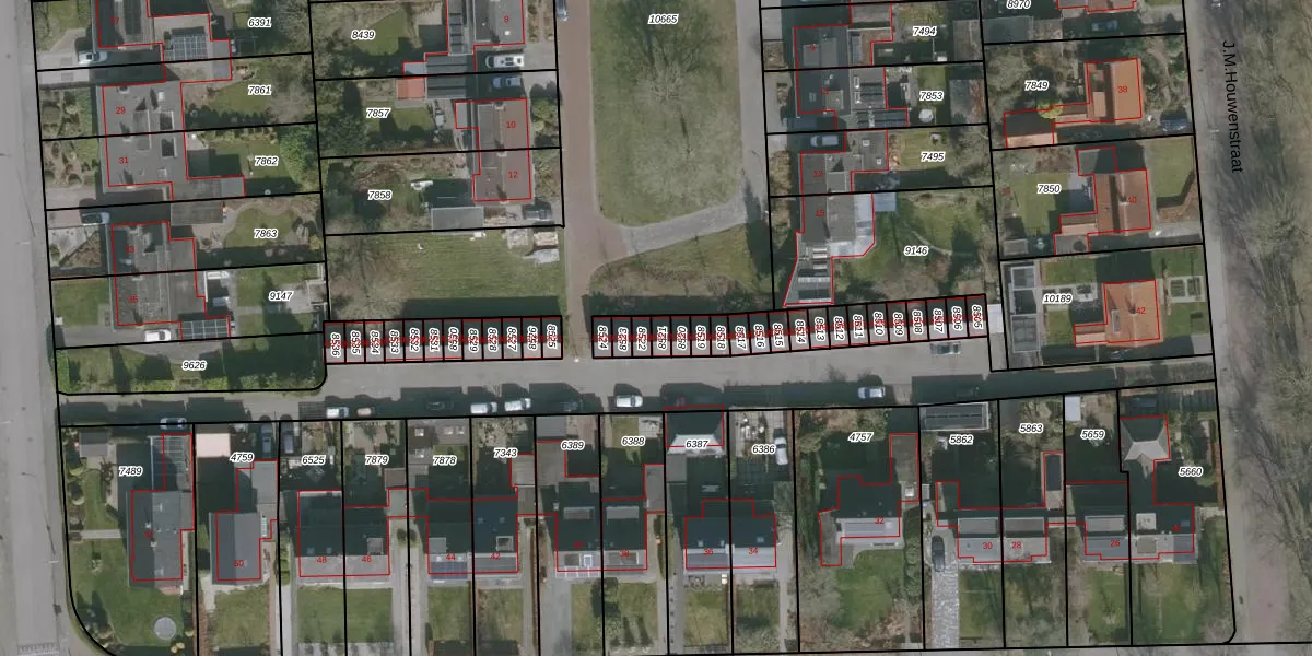 Het perceel waarop J.M.Houwenstraat 42-17 staat heeft een oppervlakte van 19 m². Dit is een klein perceel. De perceeloppervlakte wordt geregistreerd door het Kadaster. Gedetailleerde informatie over de maten van dit perceel kunt u vinden in het rapport Kadastrale kaart met maatvoering van J.M.Houwenstraat 42-17.