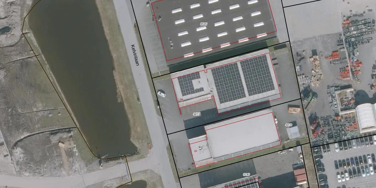 Het perceel waarop Kelvinlaan 5-a staat heeft een oppervlakte van 2325 m². Dit is een zeer groot perceel. De perceeloppervlakte wordt geregistreerd door het Kadaster. Gedetailleerde informatie over de maten van dit perceel kunt u vinden in het rapport Kadastrale kaart met maatvoering van Kelvinlaan 5-a.