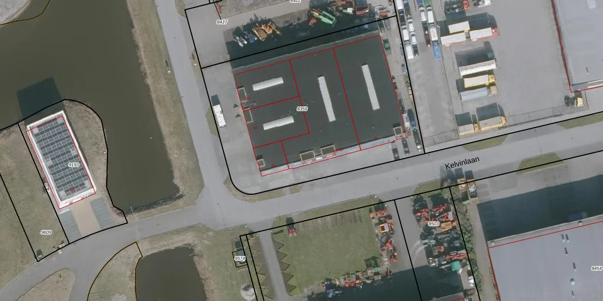 Het perceel waarop Kelvinlaan 9-d staat heeft een oppervlakte van 3000 m². Dit is een zeer groot perceel. De perceeloppervlakte wordt geregistreerd door het Kadaster. Gedetailleerde informatie over de maten van dit perceel kunt u vinden in het rapport Kadastrale kaart met maatvoering van Kelvinlaan 9-d.