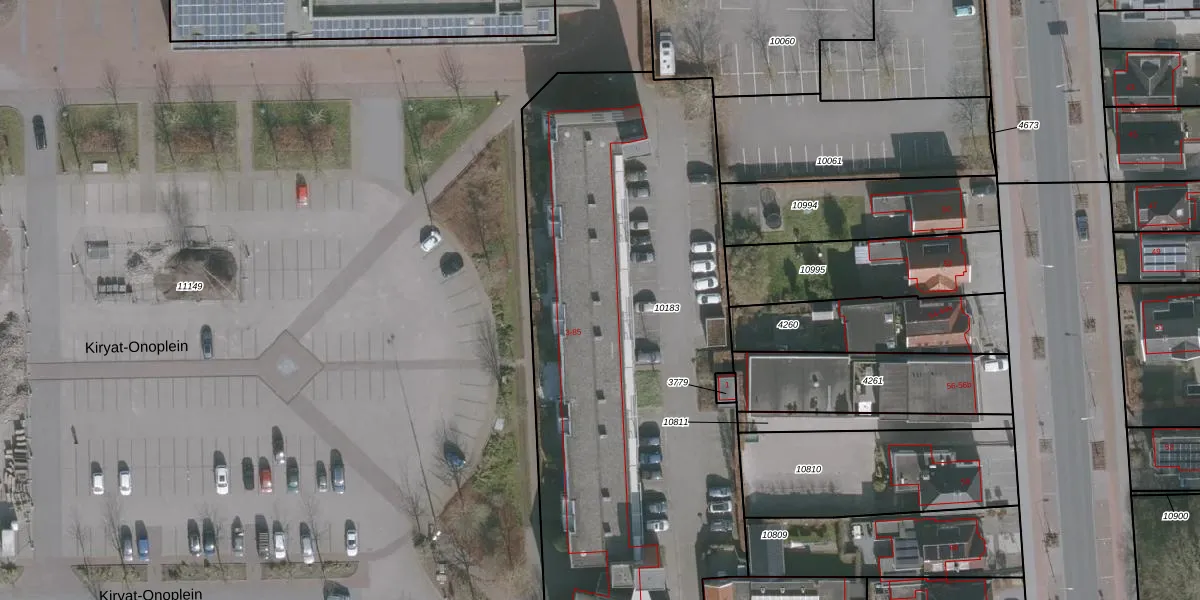 Het perceel waarop Kiryat-Onoplein 13 staat heeft een oppervlakte van 3198 m². Dit is een zeer groot perceel. De perceeloppervlakte wordt geregistreerd door het Kadaster. Gedetailleerde informatie over de maten van dit perceel kunt u vinden in het rapport Kadastrale kaart met maatvoering van Kiryat-Onoplein 13.