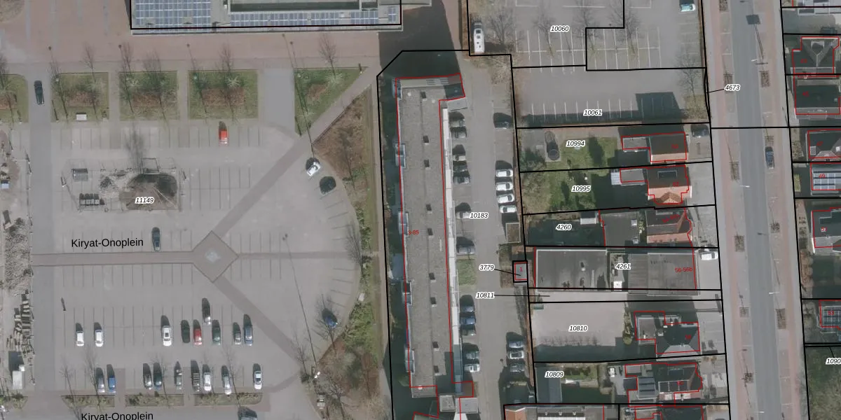 Het perceel waarop Kiryat-Onoplein 41 staat heeft een oppervlakte van 3198 m². Dit is een zeer groot perceel. De perceeloppervlakte wordt geregistreerd door het Kadaster. Gedetailleerde informatie over de maten van dit perceel kunt u vinden in het rapport Kadastrale kaart met maatvoering van Kiryat-Onoplein 41.