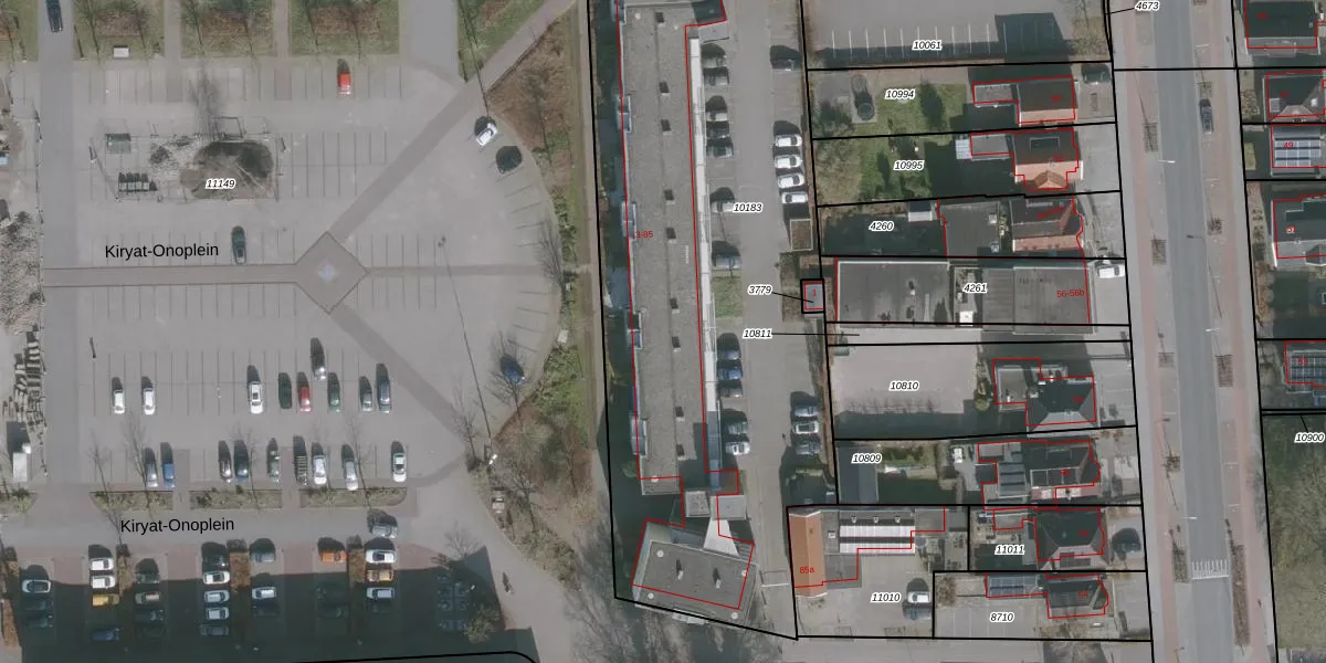 Het perceel waarop Kiryat-Onoplein 51 staat heeft een oppervlakte van 3198 m². Dit is een zeer groot perceel. De perceeloppervlakte wordt geregistreerd door het Kadaster. Gedetailleerde informatie over de maten van dit perceel kunt u vinden in het rapport Kadastrale kaart met maatvoering van Kiryat-Onoplein 51.