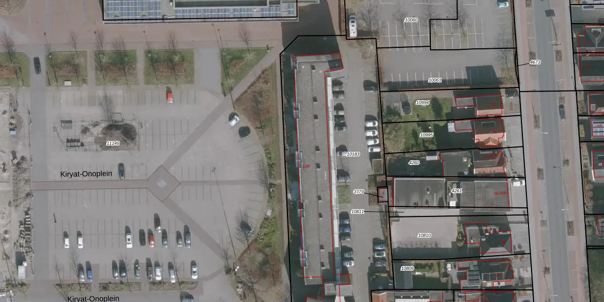 Het perceel waarop Kiryat-Onoplein 69 staat heeft een oppervlakte van 3198 m². Dit is een zeer groot perceel. De perceeloppervlakte wordt geregistreerd door het Kadaster. Gedetailleerde informatie over de maten van dit perceel kunt u vinden in het rapport Kadastrale kaart met maatvoering van Kiryat-Onoplein 69.