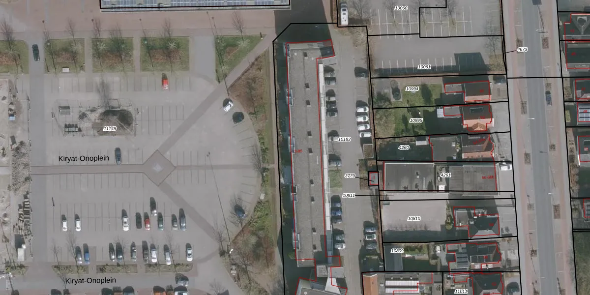 Het perceel waarop Kiryat-Onoplein 71 staat heeft een oppervlakte van 3198 m². Dit is een zeer groot perceel. De perceeloppervlakte wordt geregistreerd door het Kadaster. Gedetailleerde informatie over de maten van dit perceel kunt u vinden in het rapport Kadastrale kaart met maatvoering van Kiryat-Onoplein 71.