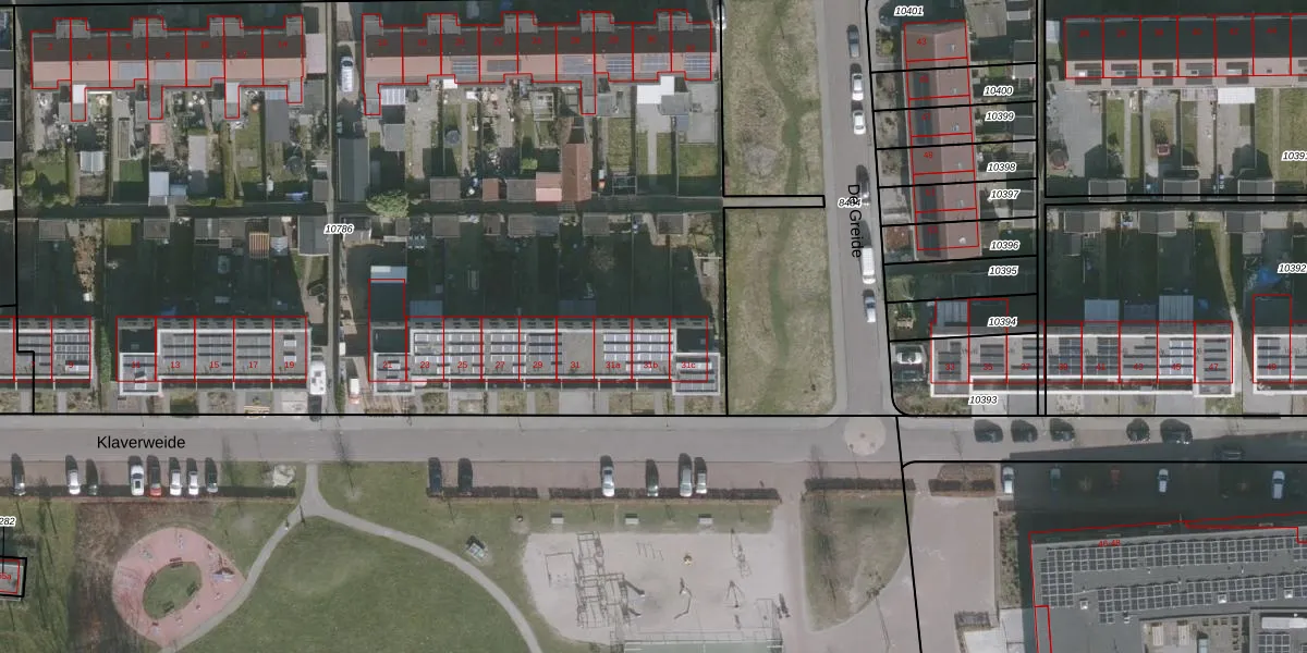 Het perceel waarop Klaverweide 31-b staat heeft een oppervlakte van 6895 m². Dit is een zeer groot perceel. De perceeloppervlakte wordt geregistreerd door het Kadaster. Gedetailleerde informatie over de maten van dit perceel kunt u vinden in het rapport Kadastrale kaart met maatvoering van Klaverweide 31-b.