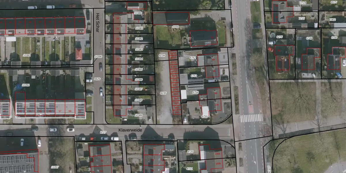 Het perceel waarop Klaverweide 55-7 staat heeft een oppervlakte van 527 m². Dit is een groot perceel. De perceeloppervlakte wordt geregistreerd door het Kadaster. Gedetailleerde informatie over de maten van dit perceel kunt u vinden in het rapport Kadastrale kaart met maatvoering van Klaverweide 55-7.
