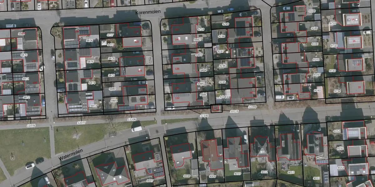 Het perceel waarop Korenmolen 132 staat heeft een oppervlakte van 203 m². Dit is een middelgroot perceel. De perceeloppervlakte wordt geregistreerd door het Kadaster. Gedetailleerde informatie over de maten van dit perceel kunt u vinden in het rapport Kadastrale kaart met maatvoering van Korenmolen 132.