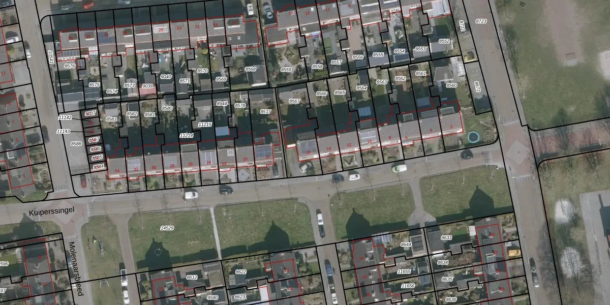 Kuiperssingel 16 is gelegen op kadastraal perceel DTN02A8567. Deze kadastrale aanduiding is uniek en wordt gebruikt door het Kadaster om eigendomsrechten en andere zakelijke rechten vast te leggen. Het perceel maakt onderdeel uit van de kadastrale gemeente Drachten.