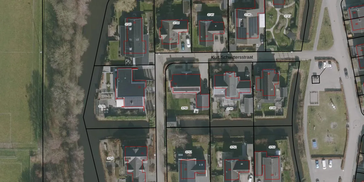Kurt Schwittersstraat 24 is gelegen op kadastraal perceel DTN02D3750. Deze kadastrale aanduiding is uniek en wordt gebruikt door het Kadaster om eigendomsrechten en andere zakelijke rechten vast te leggen. Het perceel maakt onderdeel uit van de kadastrale gemeente Drachten.