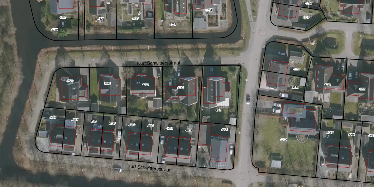 Kurt Schwittersstraat 3 is gelegen op kadastraal perceel DTN02D3761. Deze kadastrale aanduiding is uniek en wordt gebruikt door het Kadaster om eigendomsrechten en andere zakelijke rechten vast te leggen. Het perceel maakt onderdeel uit van de kadastrale gemeente Drachten.