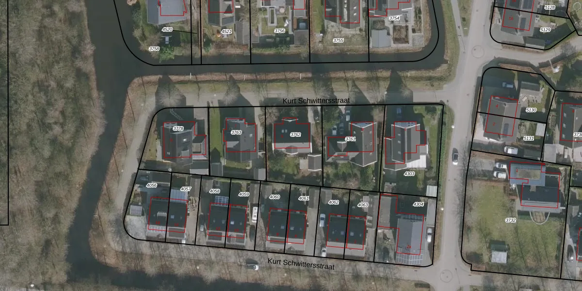 Kurt Schwittersstraat 5 is gelegen op kadastraal perceel DTN02D3762. Deze kadastrale aanduiding is uniek en wordt gebruikt door het Kadaster om eigendomsrechten en andere zakelijke rechten vast te leggen. Het perceel maakt onderdeel uit van de kadastrale gemeente Drachten.