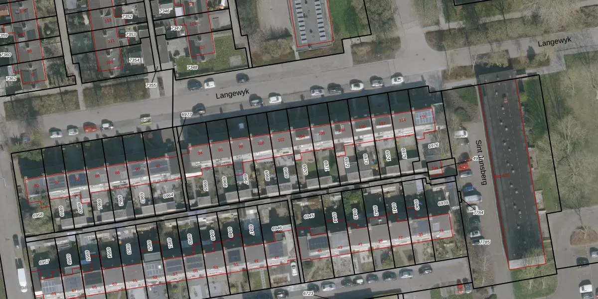 Het perceel waarop Langewyk 104 staat heeft een oppervlakte van 195 m². Dit is een middelgroot perceel. De perceeloppervlakte wordt geregistreerd door het Kadaster. Gedetailleerde informatie over de maten van dit perceel kunt u vinden in het rapport Kadastrale kaart met maatvoering van Langewyk 104.
