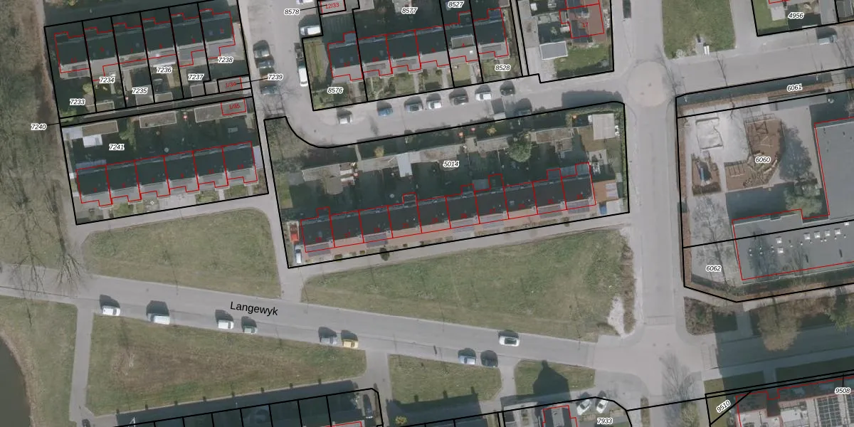 Het perceel waarop Langewyk 23 staat heeft een oppervlakte van 2242 m². Dit is een zeer groot perceel. De perceeloppervlakte wordt geregistreerd door het Kadaster. Gedetailleerde informatie over de maten van dit perceel kunt u vinden in het rapport Kadastrale kaart met maatvoering van Langewyk 23.