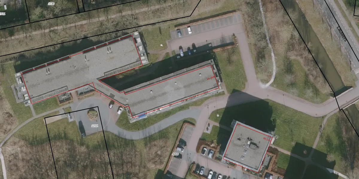 Het perceel waarop Lauwers 14-8 staat heeft een oppervlakte van 2,6 ha. Dit is een zeer groot perceel. De perceeloppervlakte wordt geregistreerd door het Kadaster. Gedetailleerde informatie over de maten van dit perceel kunt u vinden in het rapport Kadastrale kaart met maatvoering van Lauwers 14-8.