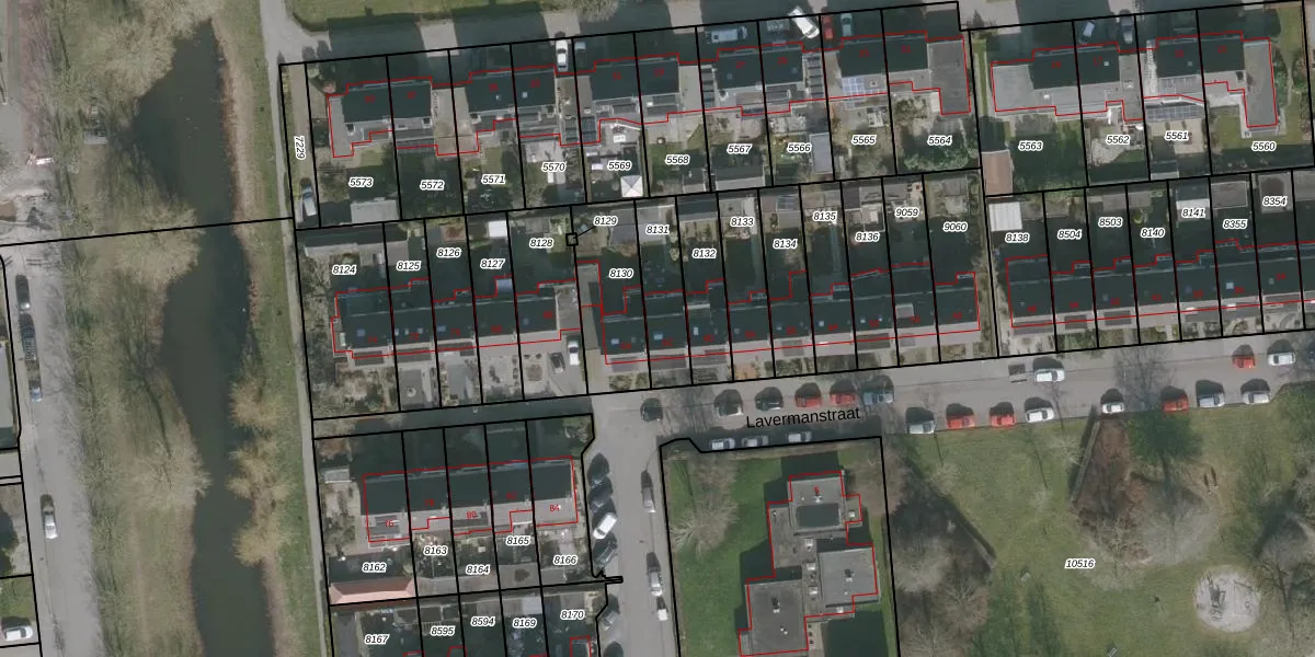 Het perceel waarop Lavermanstraat 62 staat heeft een oppervlakte van 182 m². Dit is een middelgroot perceel. De perceeloppervlakte wordt geregistreerd door het Kadaster. Gedetailleerde informatie over de maten van dit perceel kunt u vinden in het rapport Kadastrale kaart met maatvoering van Lavermanstraat 62.