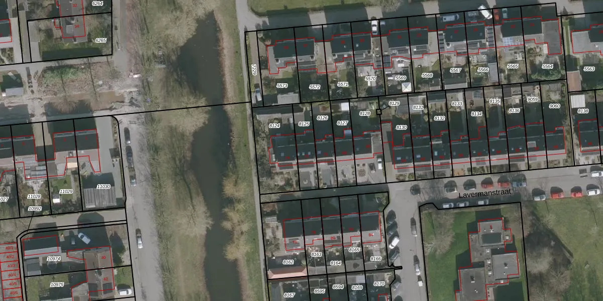 Het perceel waarop Lavermanstraat 72 staat heeft een oppervlakte van 182 m². Dit is een middelgroot perceel. De perceeloppervlakte wordt geregistreerd door het Kadaster. Gedetailleerde informatie over de maten van dit perceel kunt u vinden in het rapport Kadastrale kaart met maatvoering van Lavermanstraat 72.