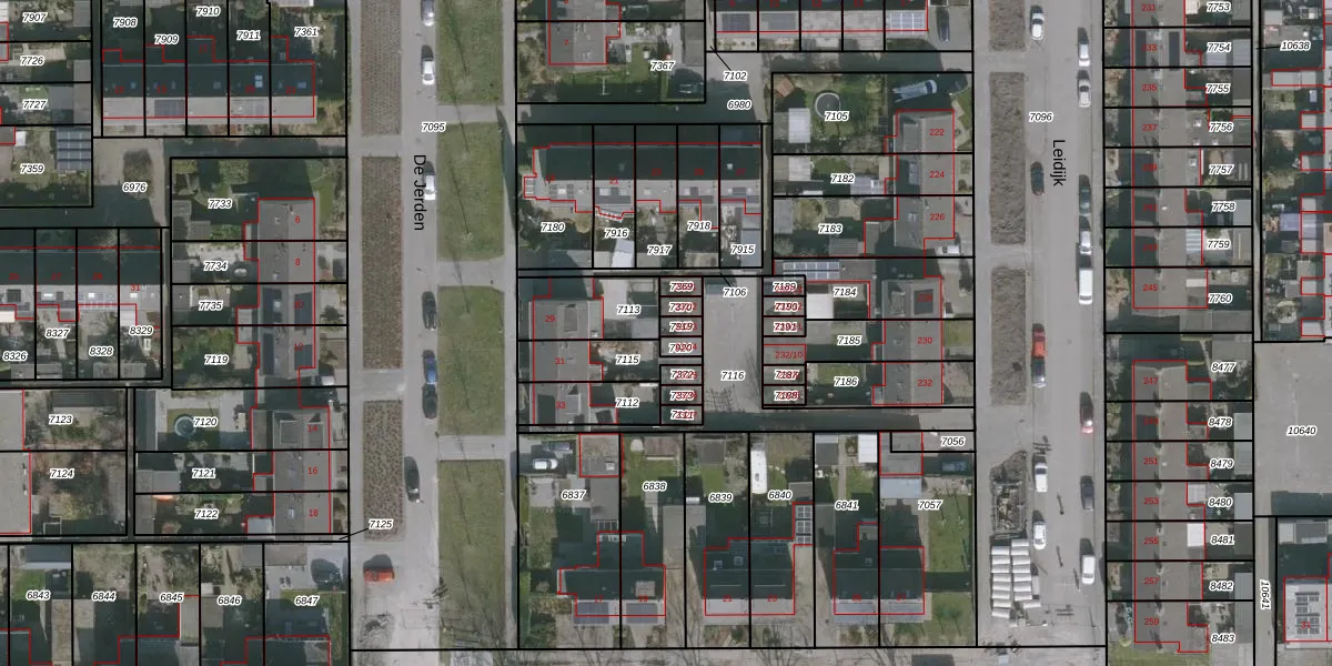 Gebruik de zoekbalk of klik op een perceel voor informatie over de adressen binnen dit perceel.