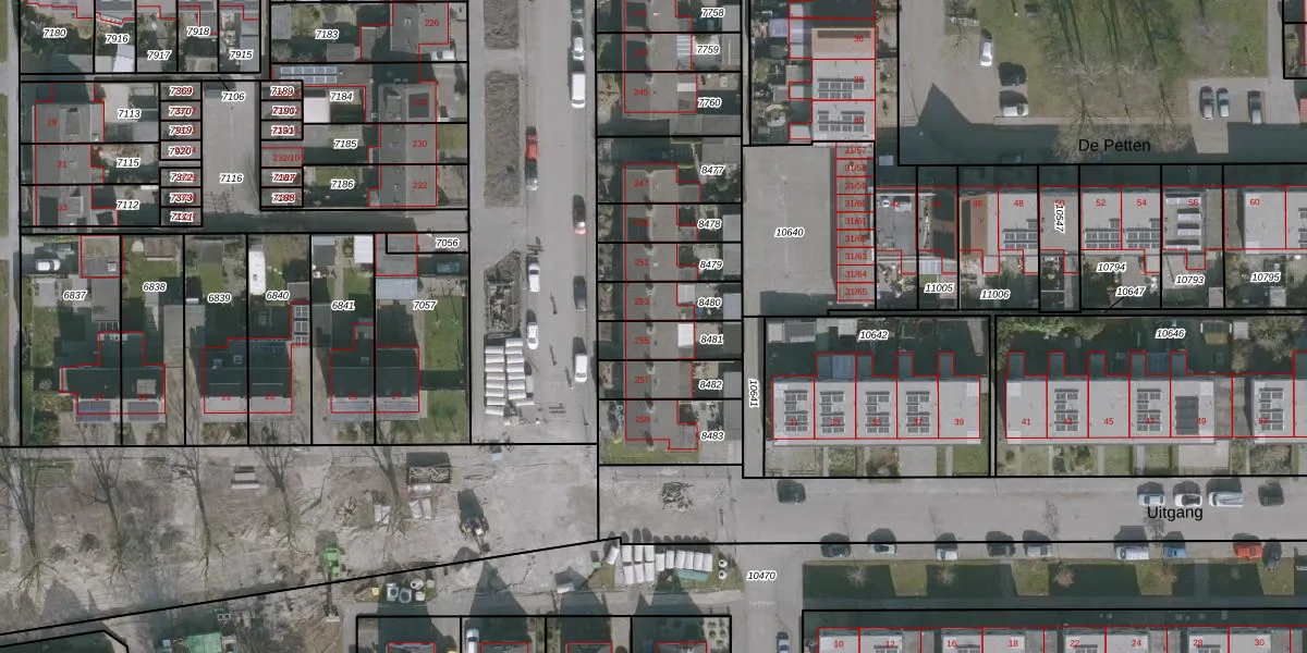 Gebruik de zoekbalk of klik op een perceel voor informatie over de adressen binnen dit perceel.