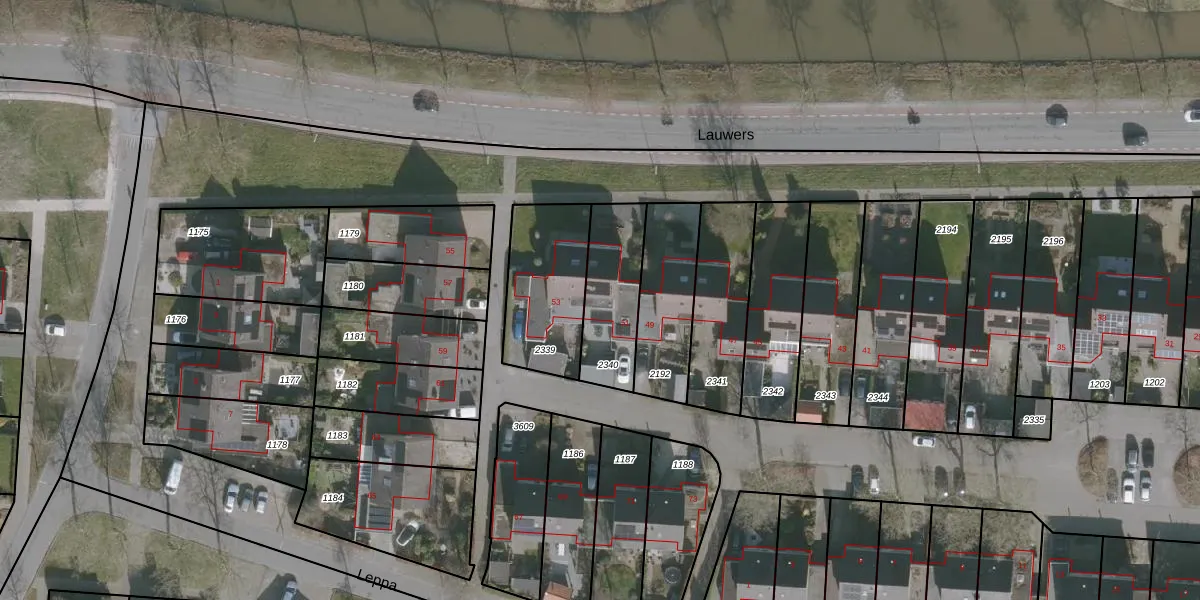 Gebruik de zoekbalk of klik op een perceel voor informatie over de adressen binnen dit perceel.