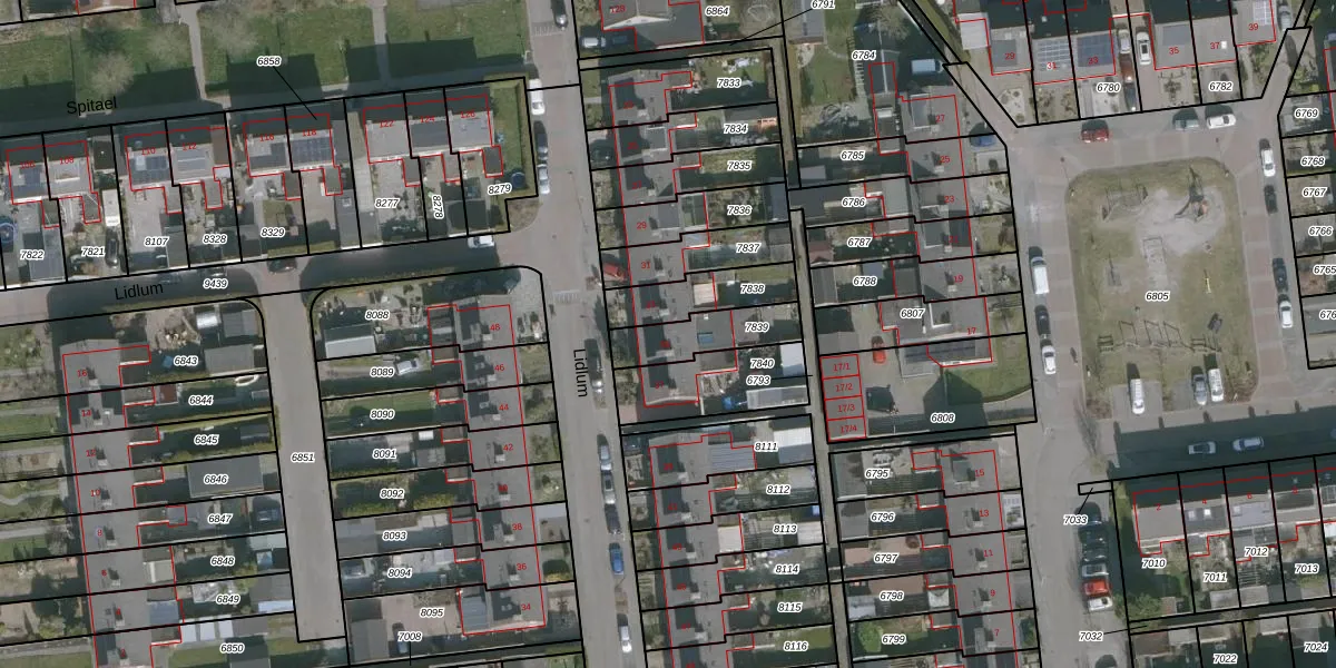 Het perceel waarop Lidlum 35 staat heeft een oppervlakte van 176 m². Dit is een middelgroot perceel. De perceeloppervlakte wordt geregistreerd door het Kadaster. Gedetailleerde informatie over de maten van dit perceel kunt u vinden in het rapport Kadastrale kaart met maatvoering van Lidlum 35.