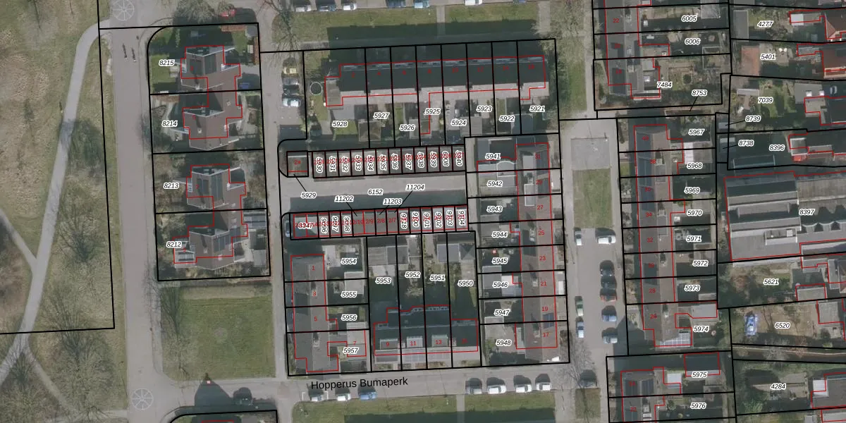 Gebruik de zoekbalk of klik op een perceel voor informatie over de adressen binnen dit perceel.