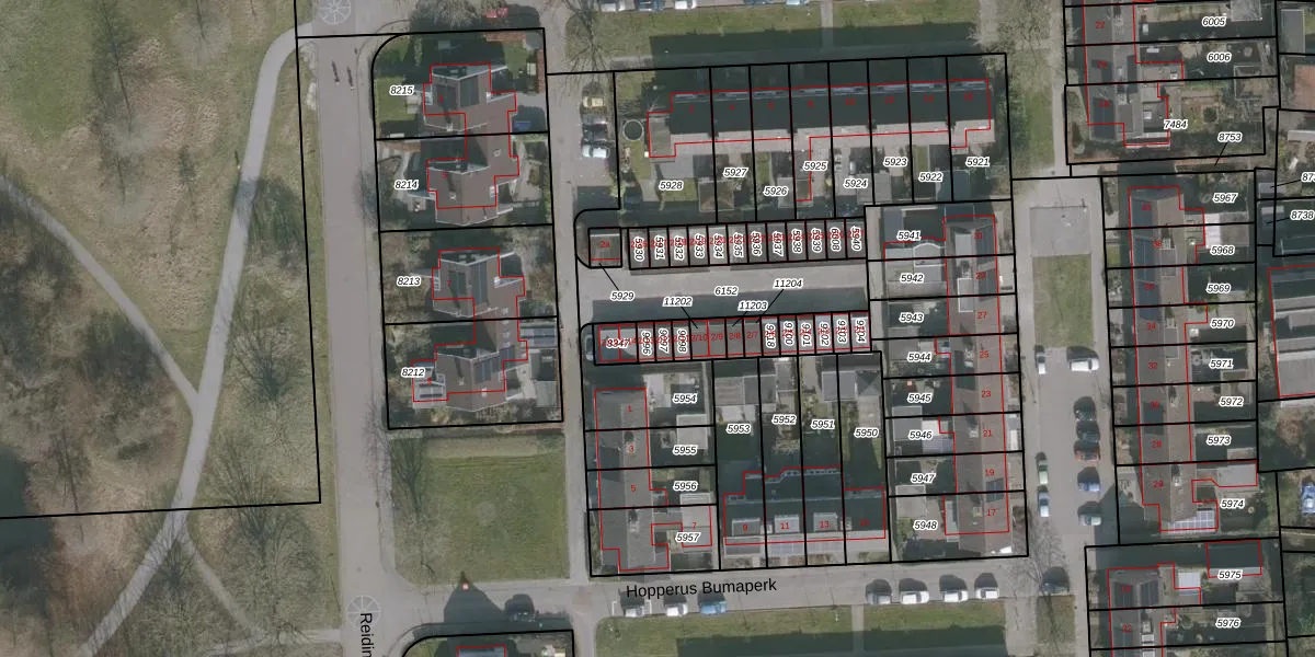 Gebruik de zoekbalk of klik op een perceel voor informatie over de adressen binnen dit perceel.