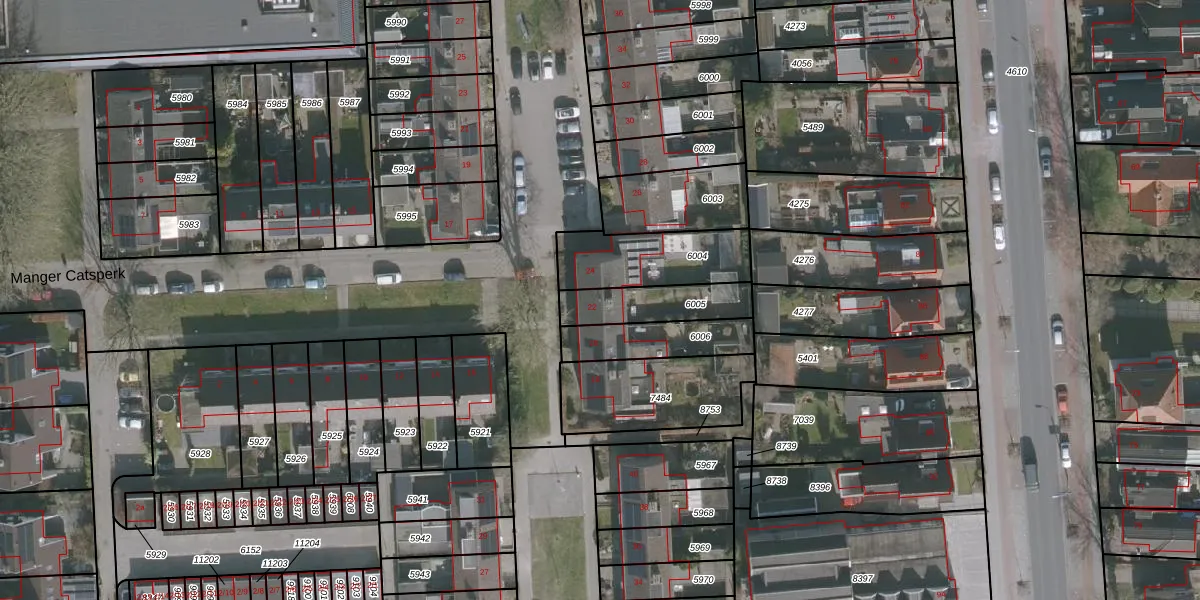 Het perceel waarop Manger Catsperk 22 staat heeft een oppervlakte van 197 m². Dit is een middelgroot perceel. De perceeloppervlakte wordt geregistreerd door het Kadaster. Gedetailleerde informatie over de maten van dit perceel kunt u vinden in het rapport Kadastrale kaart met maatvoering van Manger Catsperk 22.
